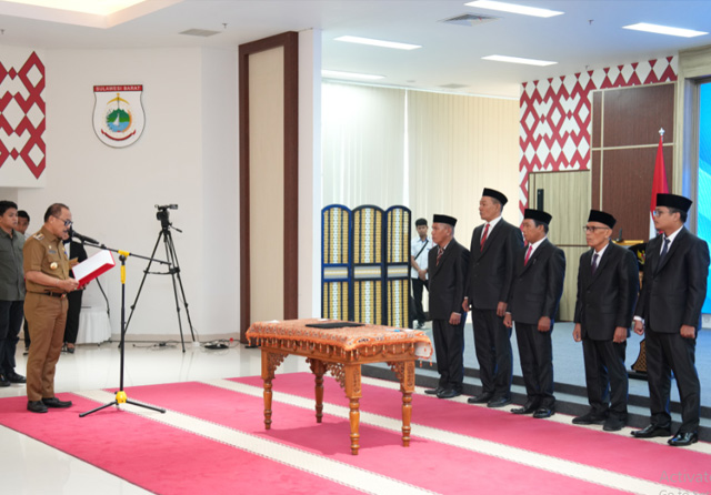 Mamuju, Sulbarkita.com -- Gubernur Sulbar Suhardi Duka melantik dan melakukan pengambilan sumpah Anggota Komisi Informasi (KI) Provinsi Sulbar masa jabatan 2025-2029. Adapun Anggota KI Provinsi Sulbar, yakni Masram, Muh Ikbal, Amran Jaya, M. Danial, Firdaus Abdullah.