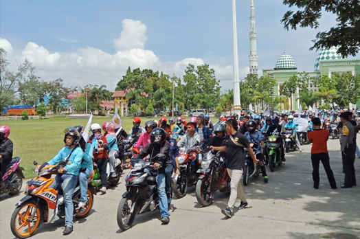 Demonstran Melakukan Konvoi Di Polman/Sulbarkita.com-Ahmad