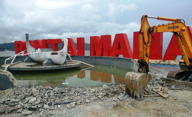 Dari pantauan Sulbarkita.com Jumat 12 Oktober 2018, bagian yang mulai dirobohkan adalah dinding kolam setinggi 50 cm. Kolam itu terletak dihadapan landmark Pantai Manakarra yang menjadi salah satu ikon Mamuju tersebut.